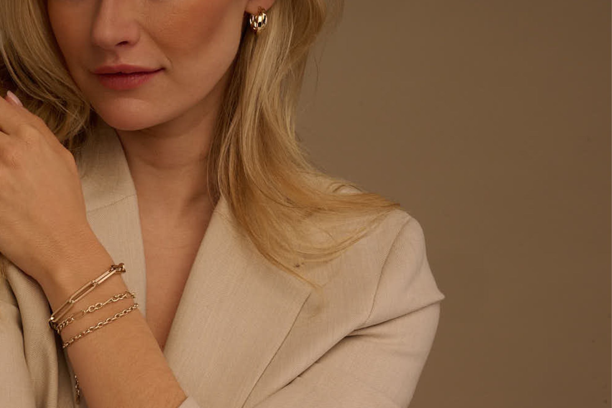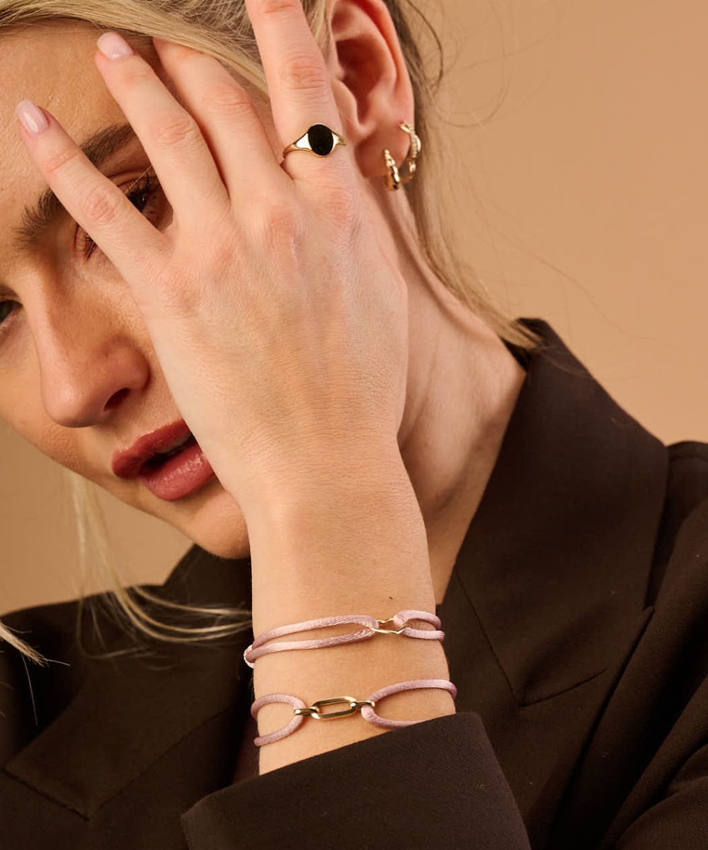 Nos bracelets sont raffinés et légers à porter, des mailles fines au style paperclip élégant. Portez un seul détail ou associez différentes textures pour créer un ensemble personnel.