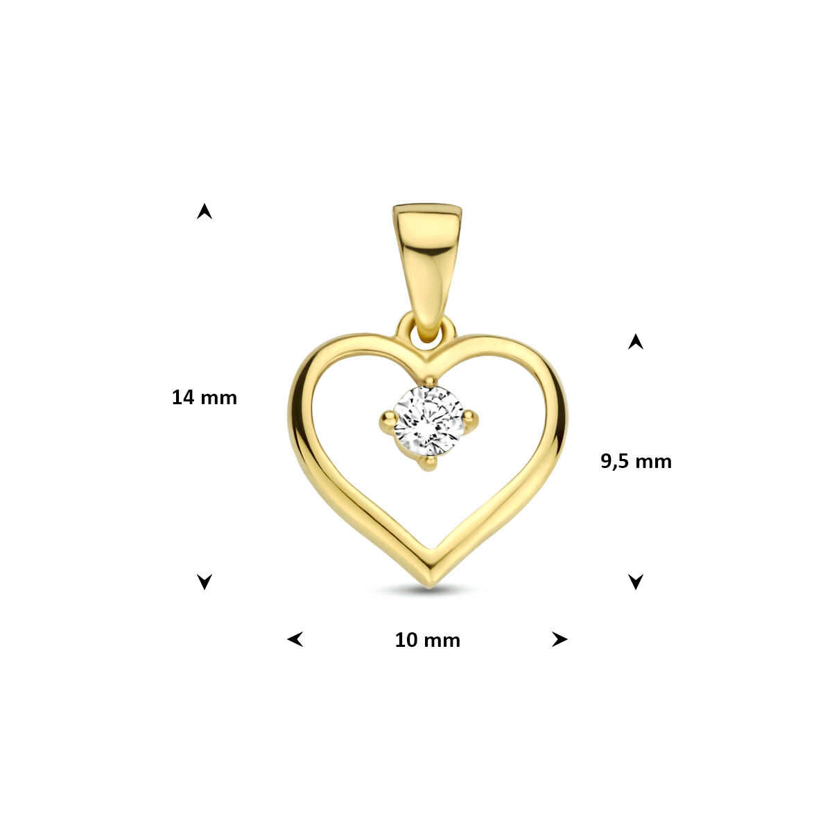 pendentif cœur 9 carats zircone 9,5 mm