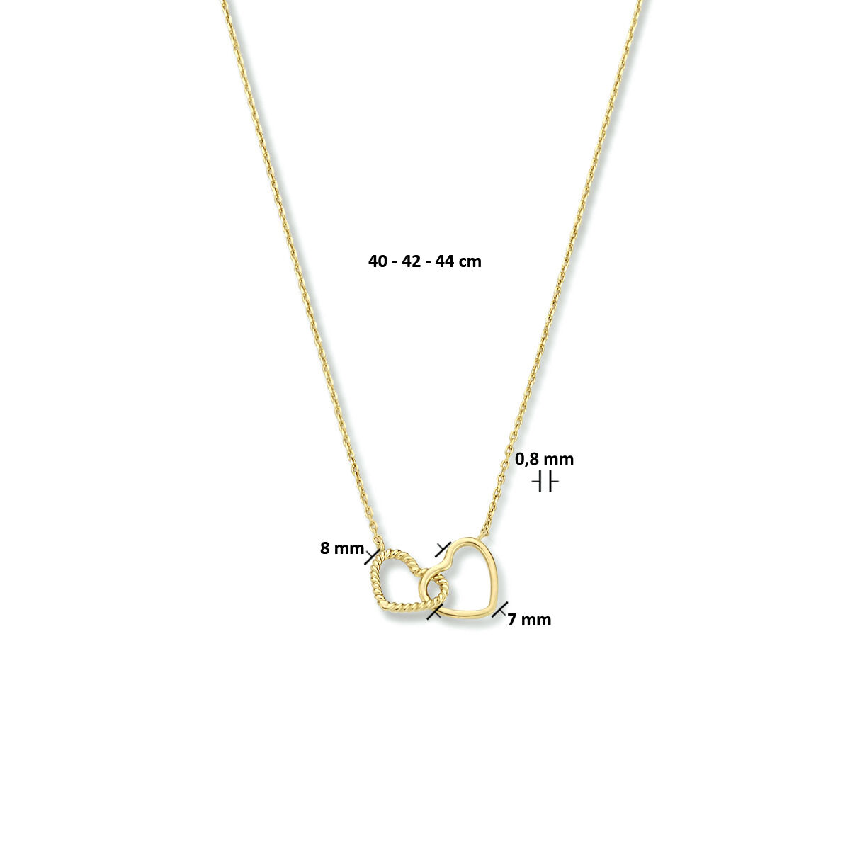 collier 9 carats avec cœurs 40 - 42 - 44 cm